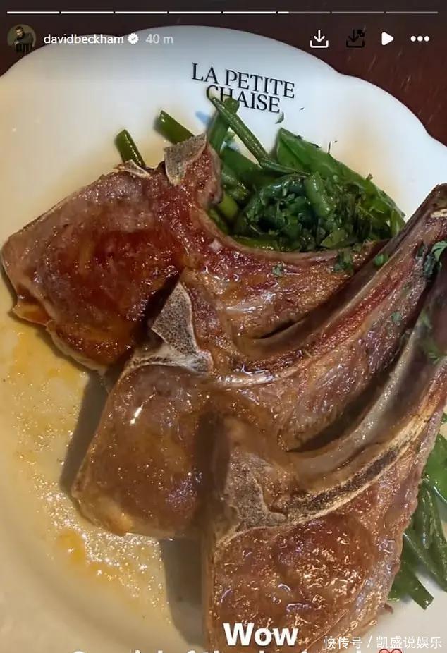 周三,贝克汉姆一家,在巴黎的当地餐厅,享用了一顿丰盛的午餐。这家餐厅算个评价餐厅,有28 欧元(233元)的手工切制牛肉和 8 欧元(66元)的薯条。看起来小贝非常喜欢这家餐厅,这家餐厅的INS界面还置顶了一张他和老板的合影。